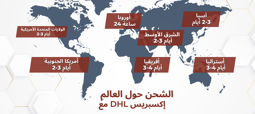 نحن نقدم شحن مجاني عبر DHL Express إلى جميع أنحاء العالم. حتى اليوم، قمنا بالشحن إلى معظم أنحاء العالم. نحن ملتزمون بتحضير طلبك وإرساله في نفس اليوم الذي تقوم فيه بالطلب. نقوم بتغليف طلبك بعناية خاصة وبأقصى قدر من السرية - دون ذكر اسمنا أو علامتنا التجارية على خارج طرد التوصيل. يمكننا أيضاً التوصيل إلى نقطة خدمة DHL التي تختارها، فقط أخبرنا بعنوان نقطة الخدمة عند إتمام الطلب. وإذا كنت تفضل استلام الطلب في منزلك أو مكتبك، يمكننا القيام بذلك أيضاً.