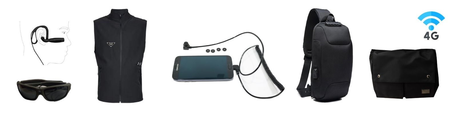These smartphones support external cameras like the BU-300 OTG Button Camera and the Necktie Camera NT-800. More options are available per request (microphone, handbag, eyeglasses, earphones, vest, sling bag).