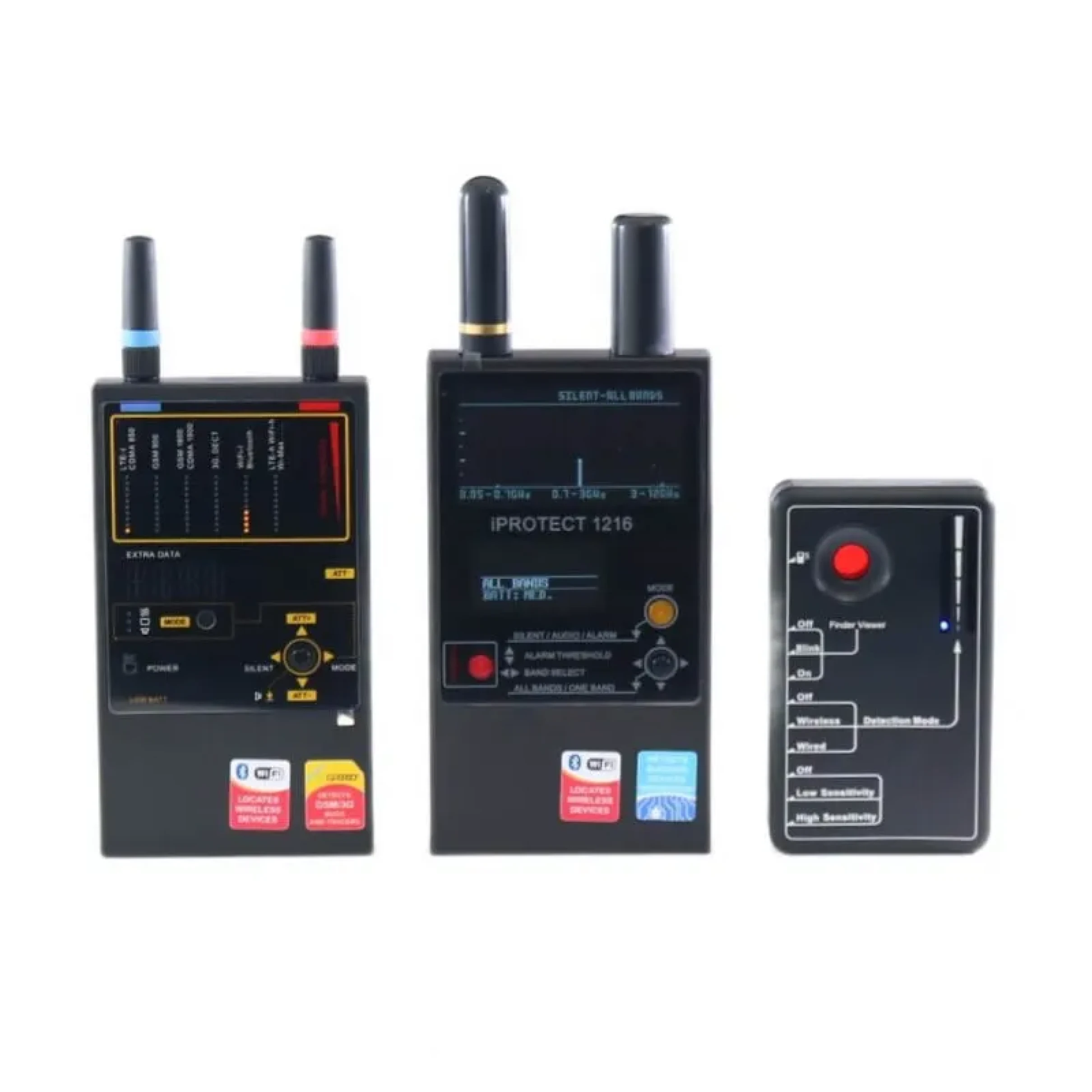 Le kit inclut l’iProtect 1216 et le Protect 1207i, avec le RD-30 ajouté en complément pour améliorer le balayage. Ensemble, ce kit TSCM assure une inspection efficace d’environnements tels que les salles de réunion, bureaux, véhicules et chambres d’hôtel pour détecter tout dispositif d’écoute ou de surveillance dissimulé. Chaque détecteur du kit joue un rôle distinct : l’un couvre une large gamme de fréquences radio, un autre cible des bandes sans fil spécifiques (cellulaire, Wi-Fi, etc.), et le troisième détecte les caméras cachées (y compris passives, non-transmettant, filaires, ou même éteintes). Les trois détecteurs fournissent des retours clairs et simples (visuels ou sonores), et ensemble ils garantissent un balayage complet permettant de détecter des dispositifs cachés tels que des micros audio/vidéo sans fil, des micros GSM à carte SIM et traceurs GPS, des caméras cachées Wi-Fi/Bluetooth, et même des caméras filaires non-transmettant.